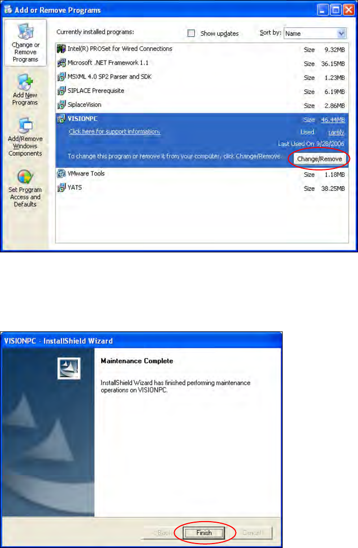 ► Click the Change/Remove button.