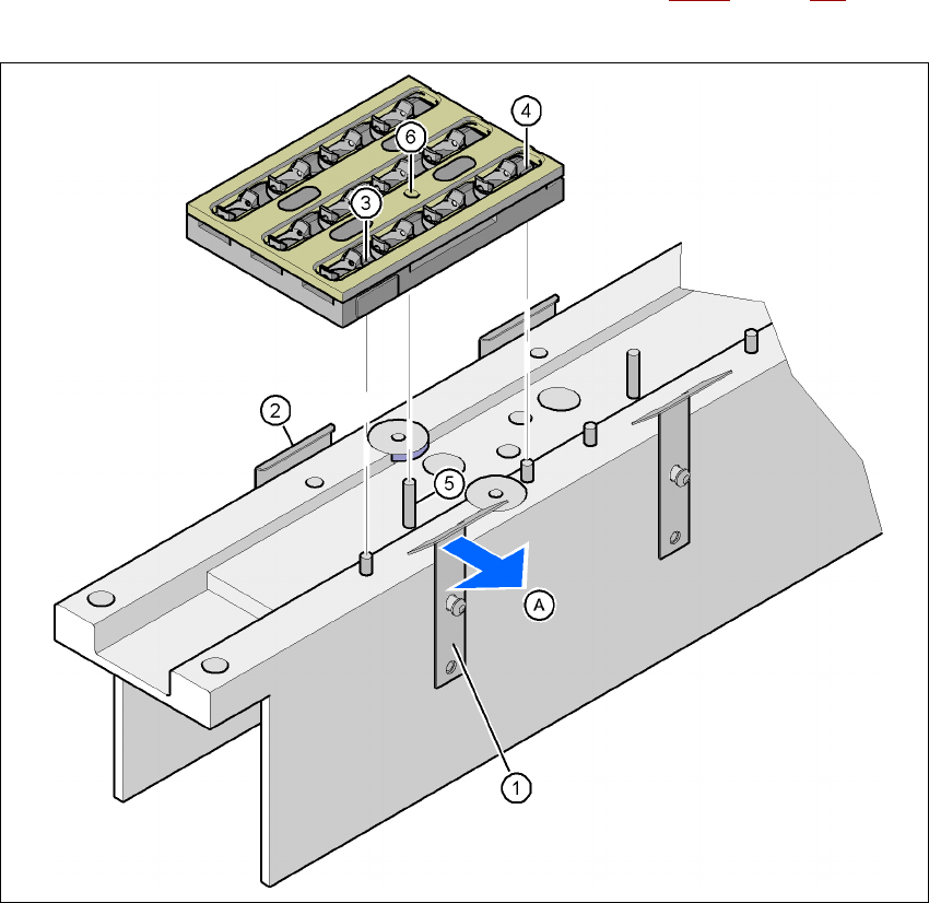 → Nasaďte zásobník nejprve stranou s čísly pipet 1, 2, 3 a 4 na nosič. Třmen (poz. 2 na obr. 6.1