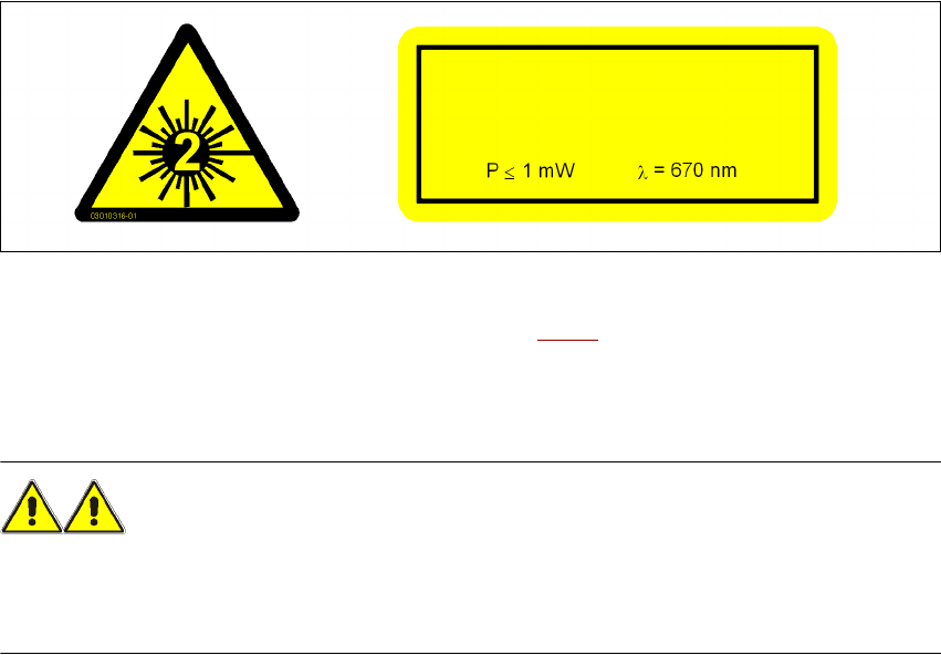 Obr. 6.16 - 1 Označení laser třídy 2 pro senzor
