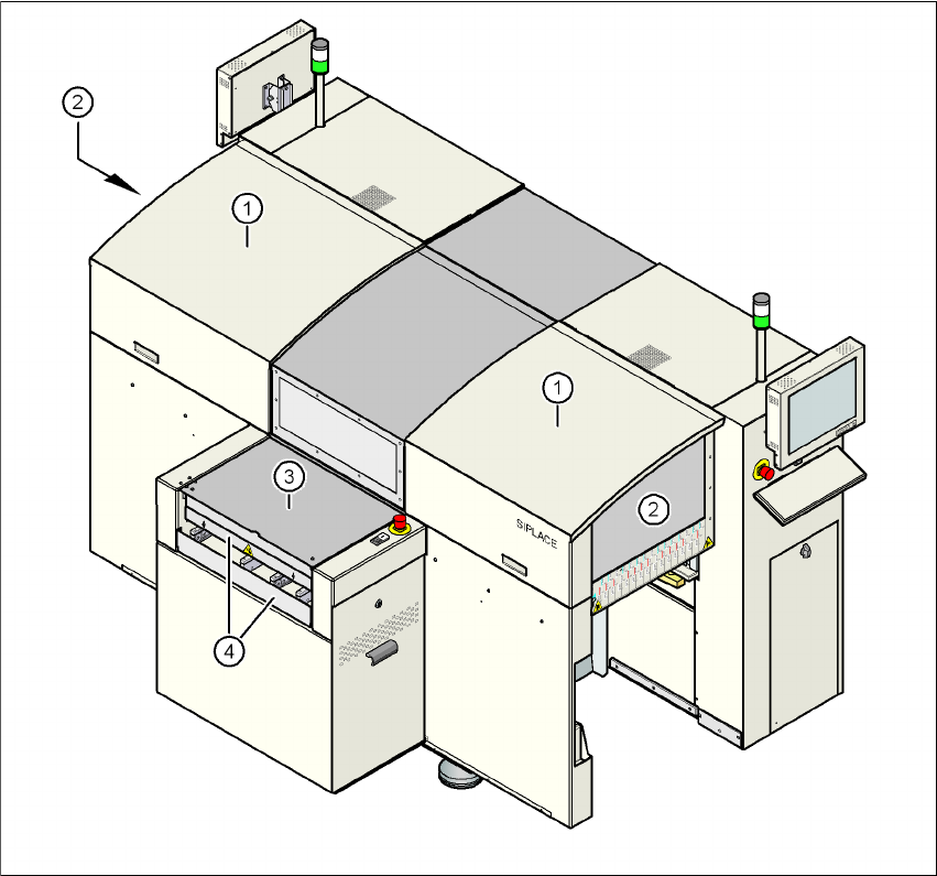 2 Bezp e č nost práce Návo d k obsluze SIPLACE D1/D2 2.6 Bez pe č nostní za ř ízení Od verze software SR.605.xx Vydání 07/2008 CZ 66 2.6 Bezpe č nostní za ř ízení 2.6.1 Ochranné kryty 2 Obr . 2.6 - 1 Ochranné kryty - poh…