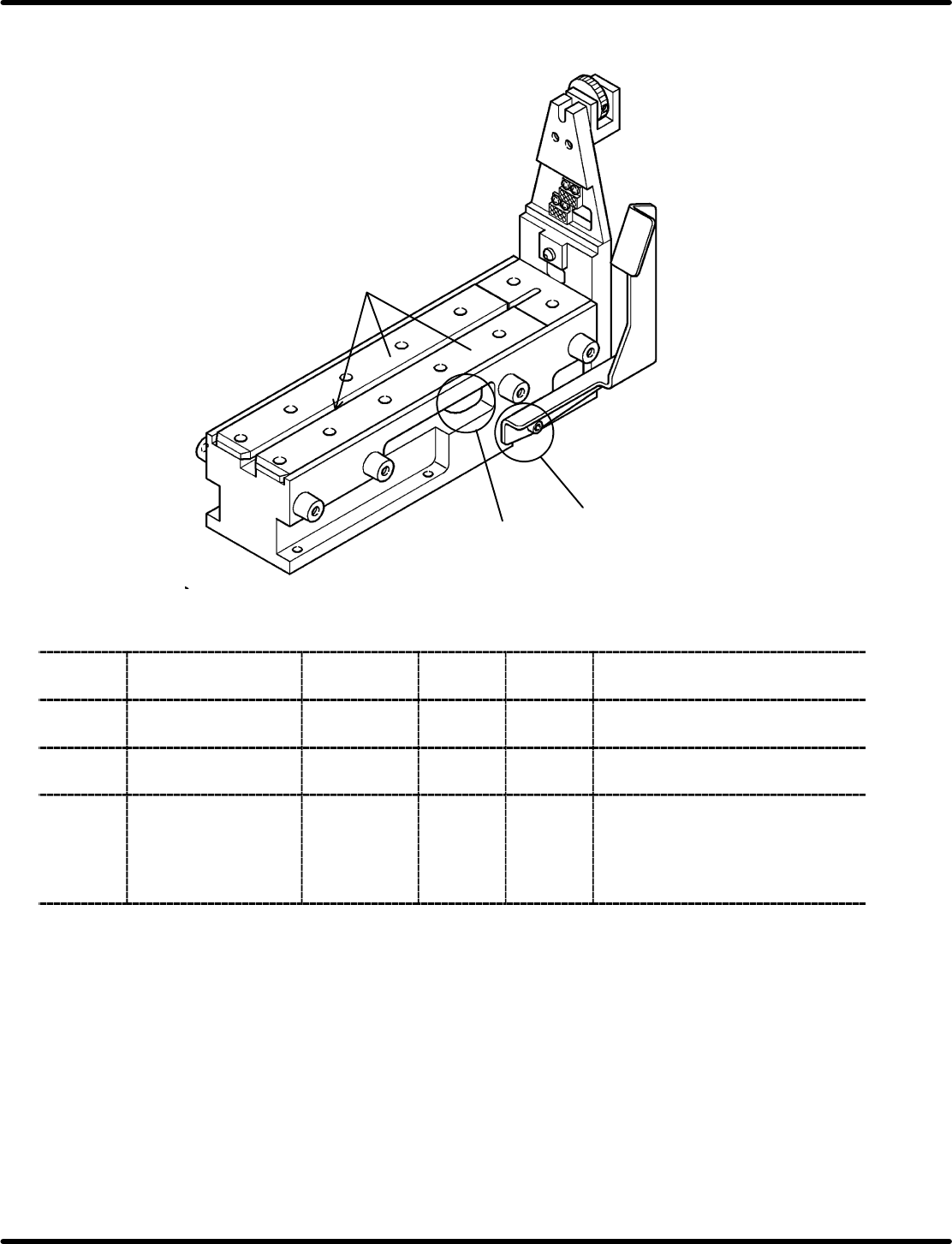 Feeder Inspection Unit 5.3 Lubrication 5.3−4 DX1OEC−80−140−C0 Feed Screws • Apply grease entirely to the thread and wipe off any excess with a waste cloth. Thread Thread Feed screw (Y) Feed screw (X) Feed screw (Z) T hre…