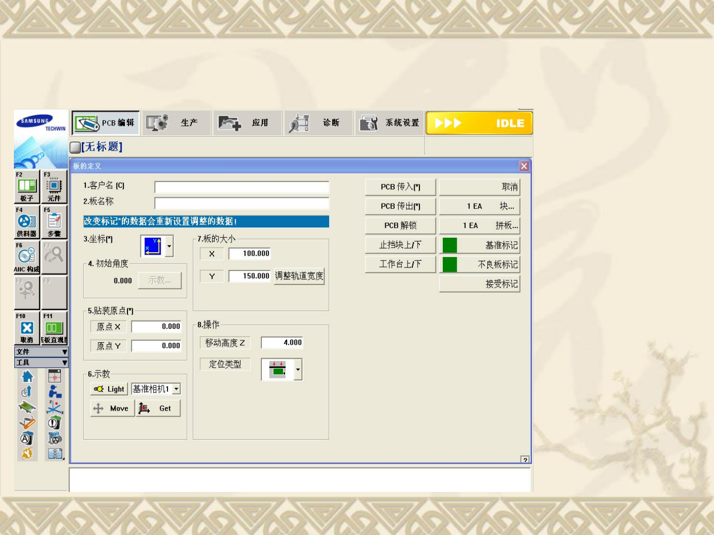 客户名,板的原点坐标、