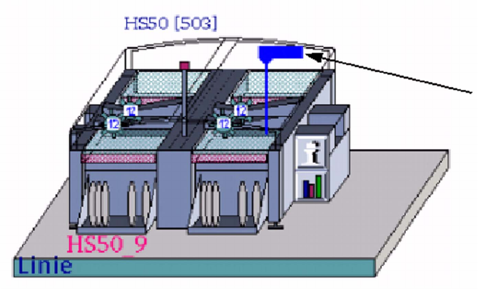 A blue flag with the offset value then appears on the output conveyor in the machine display on