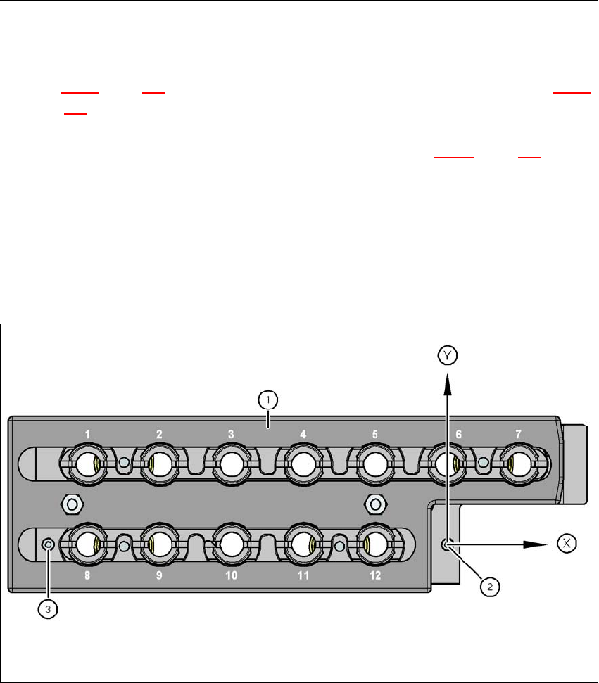 Abb. 6.1 - 7 Pipettenmagazin - Garagennummerierung, Marken zur Bestimmung der Position und der Winkellage