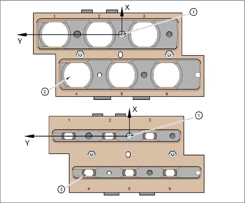 zine sitzen auf einem gemeinsamen Träger. Sie sind jeweils mit zwei Zylinderstiften zentriert und
