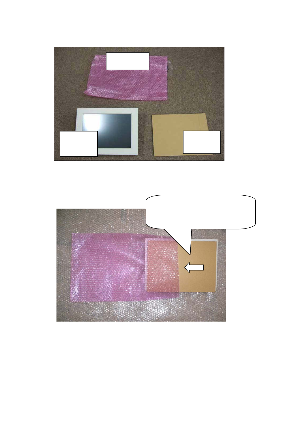 Rev1.1 第 2 章 包装要领书 2-15 图 10-2 图 10-3 气泡包装材料 LCD 监视器 (40025669) LCD Guard ( 40044469 ) 在 LCD 监视器( 40025669 ) 的上面 装上两个 LCD GUARD ( 40044469 ), 然后塞进袋子里。