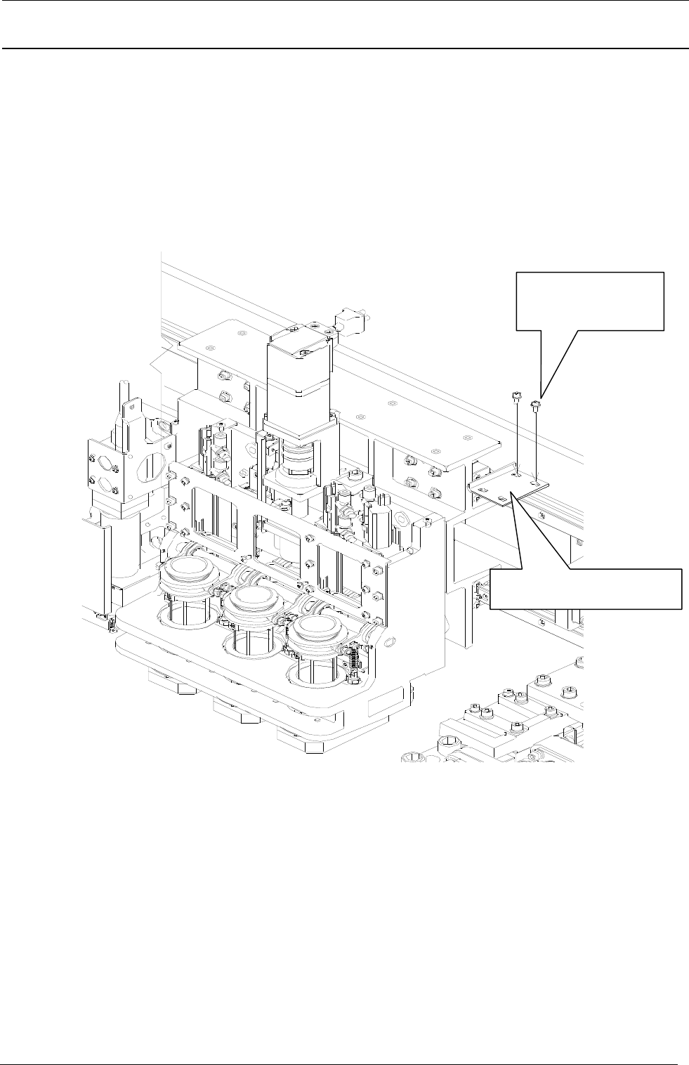 2) 将 X 轴止动器和点胶头板块边押合边固定(参照下图)。