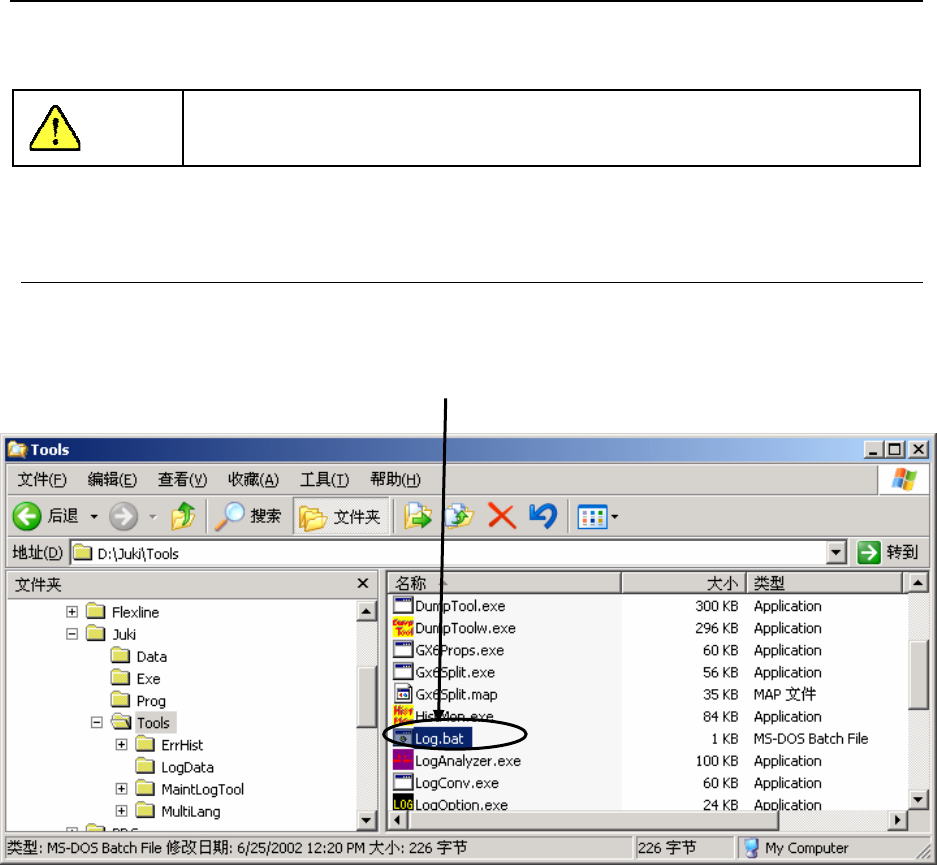 ②从「D:\Juki\Tools」文件夹里,双击“Log.bat”(由于电脑的设置不同,有时不显示后綴 bat)。