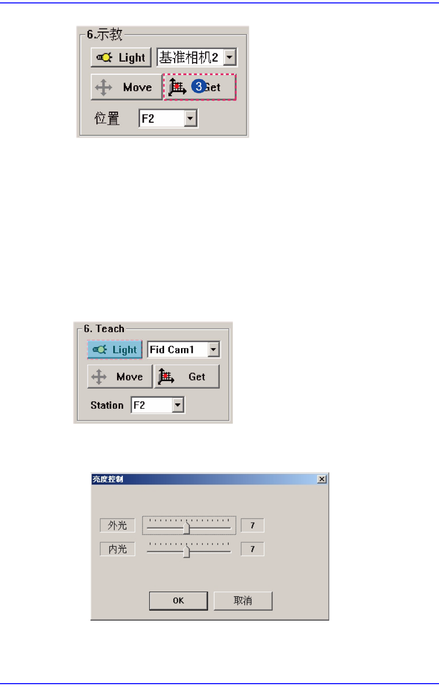 设定识别部品用Fiducial 照相机的照明度。按下此按钮时,显示以下画面。