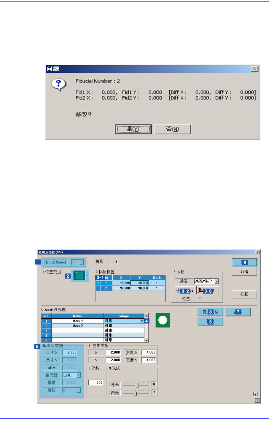 的 Fiducail Mark坐标与设定的 Fiducial Mark 坐标之差。 要反映其差值点击“是”