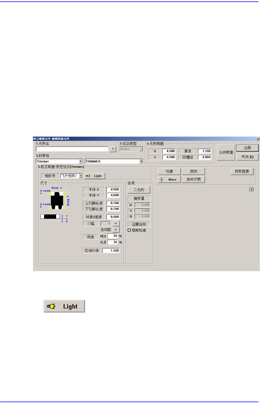 设定识别部品用摄象机的照明度。 详细事项请参照 “7.1.1 共同Align Data (7-15