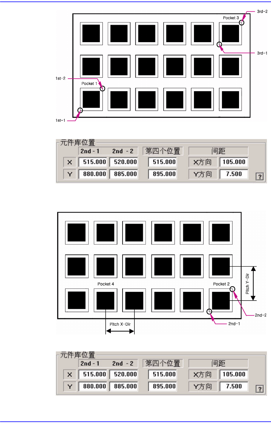 如下图所示一一输入任何一个 X 方向的pocket的中心点坐标, 2号 pocket 的