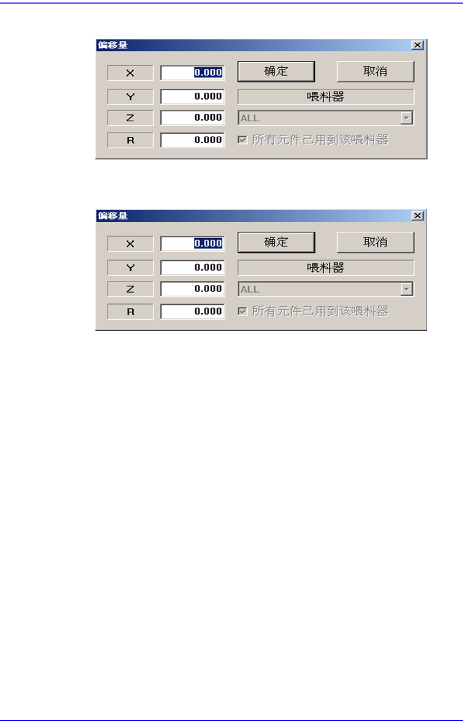它执行给贴装点的位置追加偏移量数的功能。 在执行此功能前,X列,Y列,Z