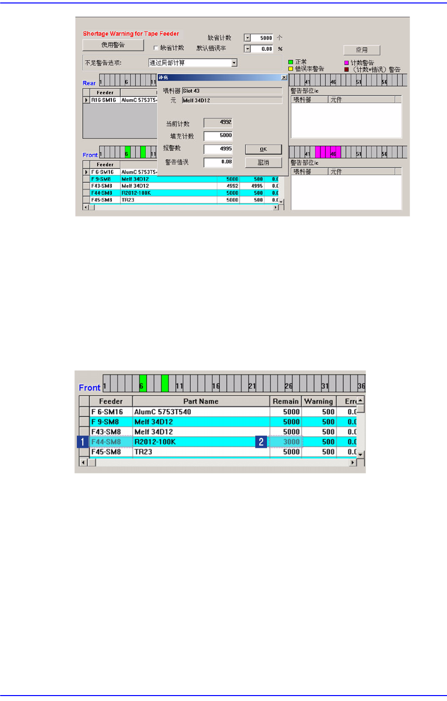 表示部件供给错误发生率超过设定值以上的Tape Feeder。