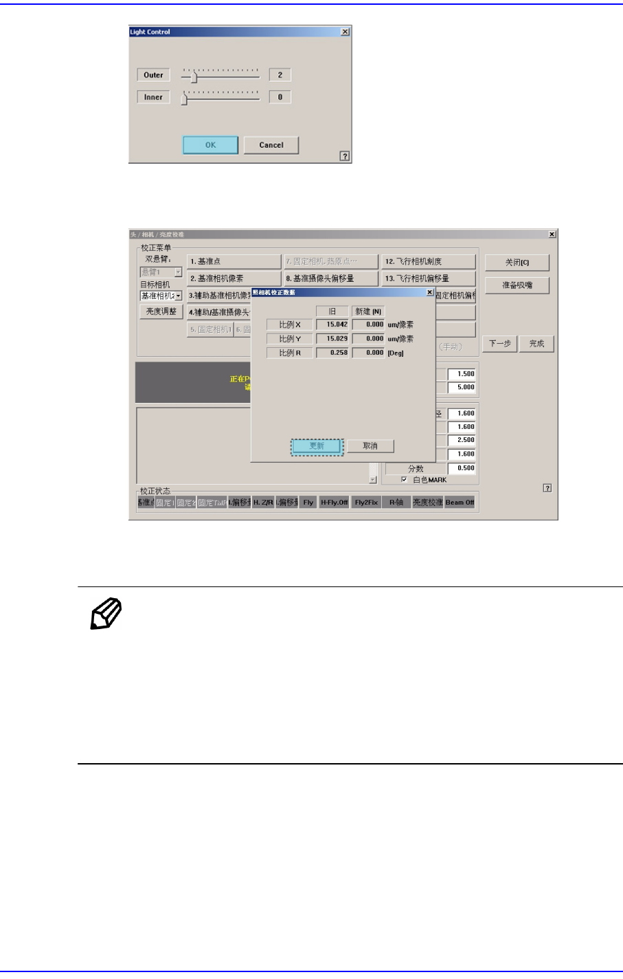 为校正基准相机的Scale(um/pixel)和Rotation(deg)没有预先需要执行的校正。