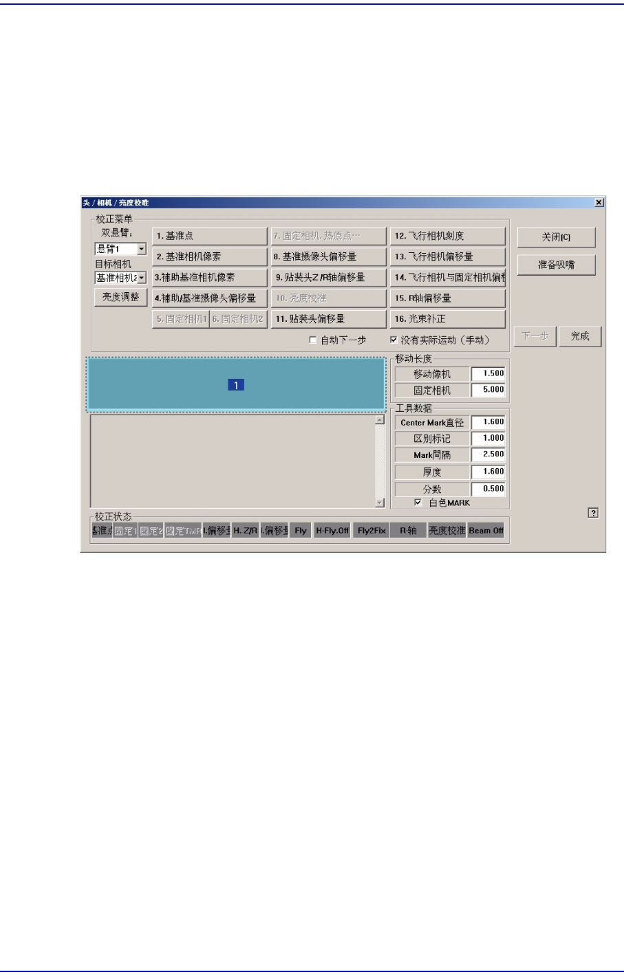 1. 点击<8. Camera Offset> 按钮则在消息窗显示 “首先,我们必须把所有吸嘴手动