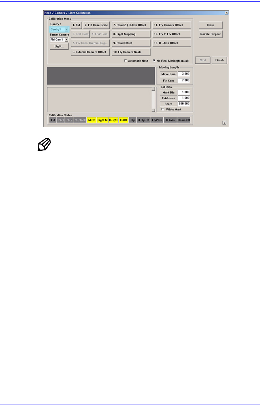 7. 那么,磁头1上升到飞行相机的Align 高度,关闭 Mirror。 然后在消息窗显示”准