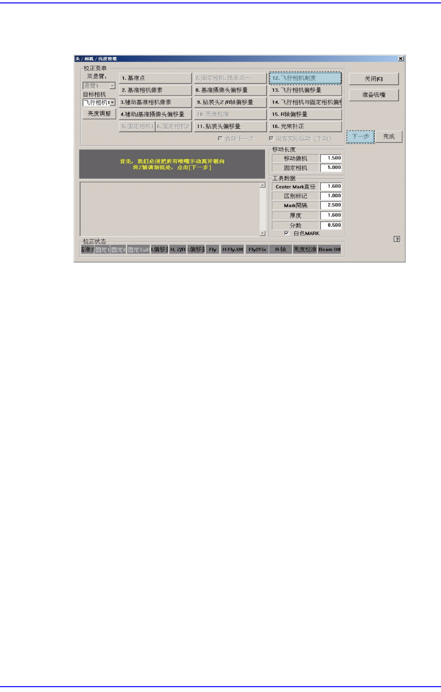 点击<10. Fly Camera Scale>按钮则显示”首先,我们必须把所有吸嘴手动离开朝