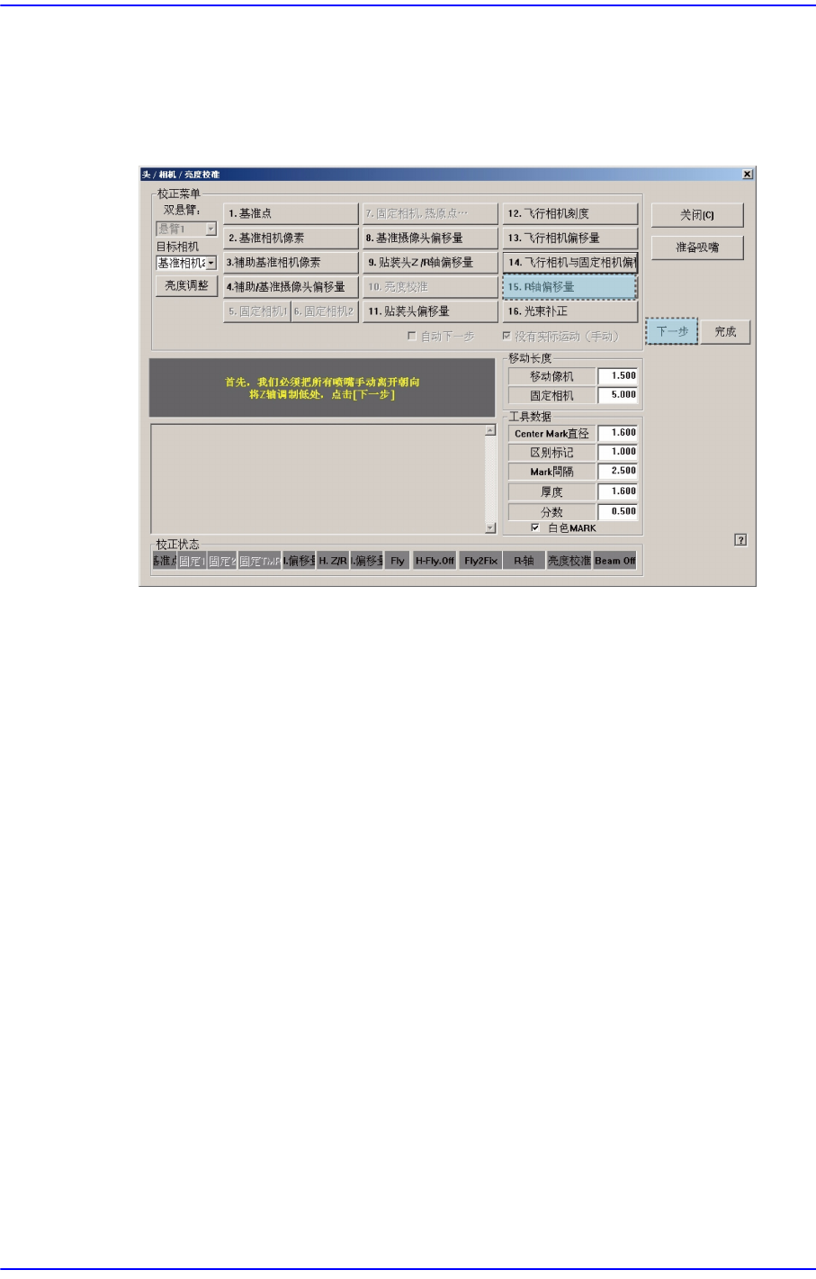 选择<15. R-Axis Offset>按钮则显示”首先,我们必须把所有吸嘴手动离开朝