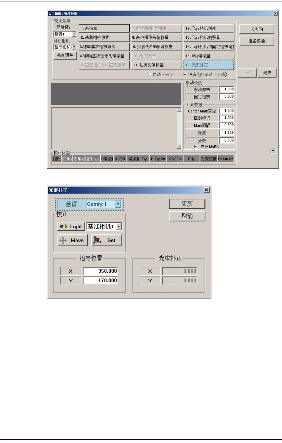 10. 在<Gantry>组合框选择Gantry2后,按照和Gantry1相同的方式实行校准。