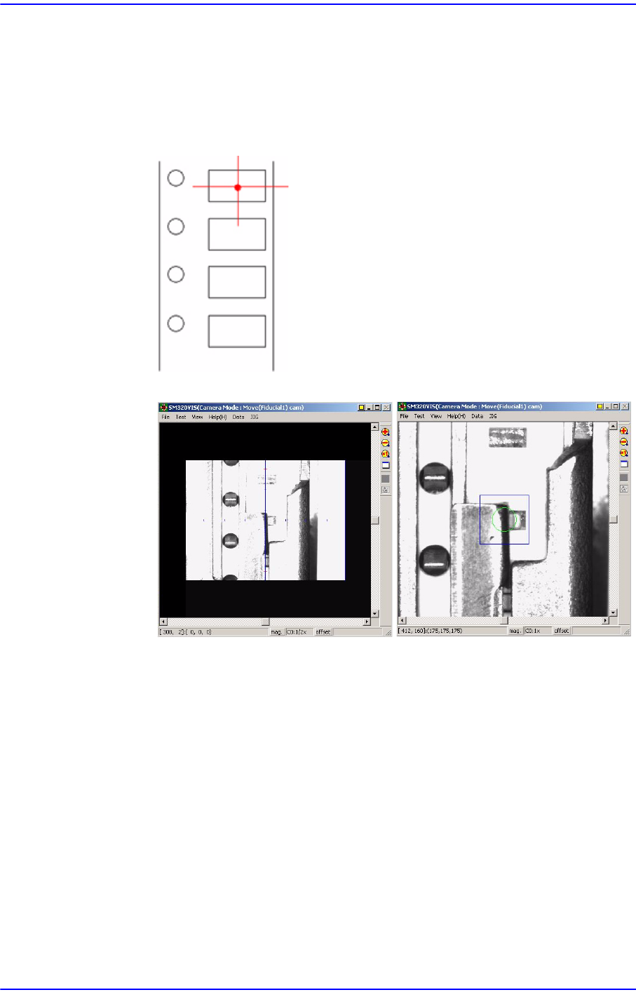 5. 利用Teaching Box 料袋中心对准SMVision 窗显示的基准相机的十字线