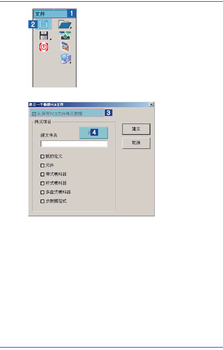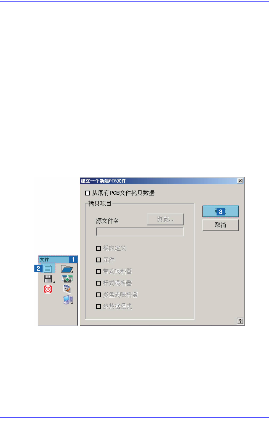 用设定的内容来建立新的PCB 文件。没有指定所要拷贝的原本文件时,在<项目