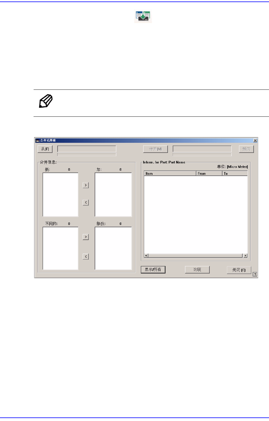 比较两个DB文件在<合并信息>领域Target DB 文件中没有的部件信息显示在<