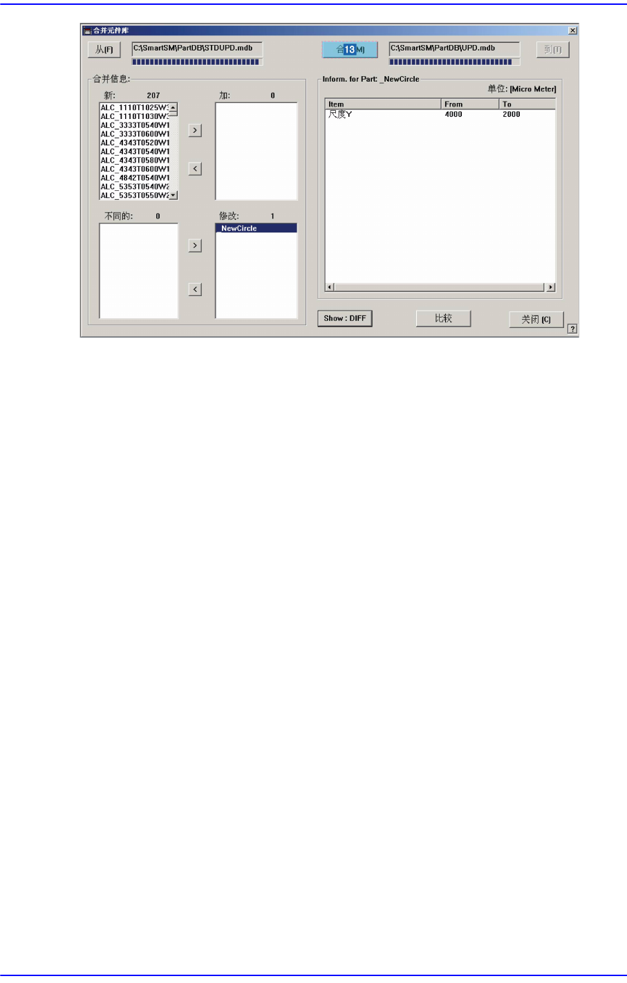 在〈 New:〉目录框或〈Different::〉目录框选择要合并的部件名