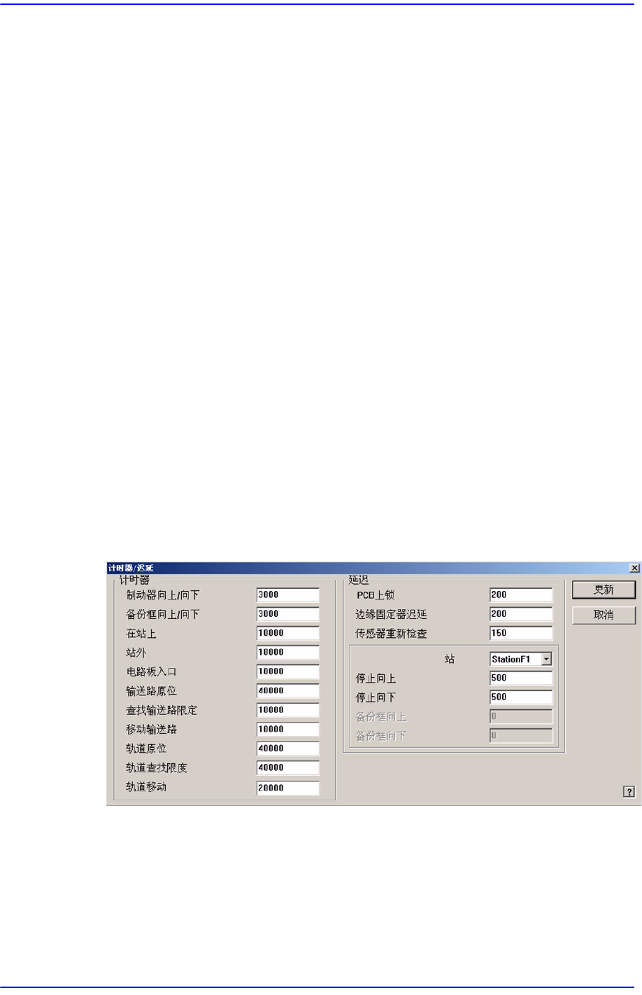 显示可以进行传送带相关Timer 设置与延时设置的‘计时器/误延’对话框。