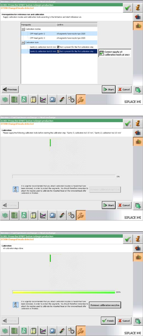If the newly fitted head is equipped with calibration nozzles, these will automatically be rejected