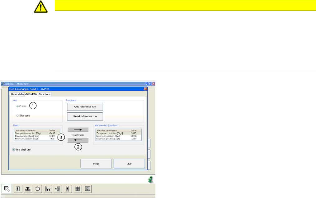 ► From software version 701 read the section "5.6.4.2 Transferring the Head-Specific Data (from