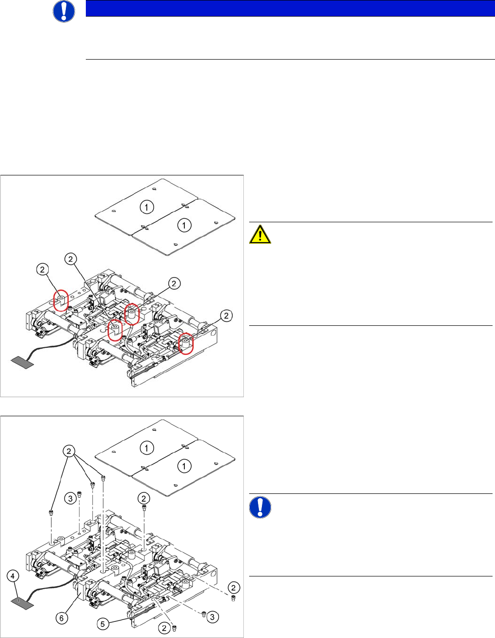 ► Loosen the screws fastening the lifting table plate (1) diagonally and evenly and then remove the