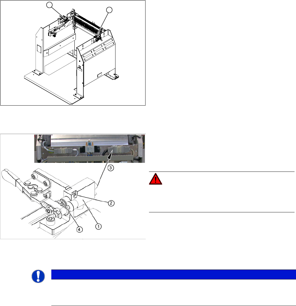 ► Switch the compressed air supply on again and check that the left and right locking sliders move out