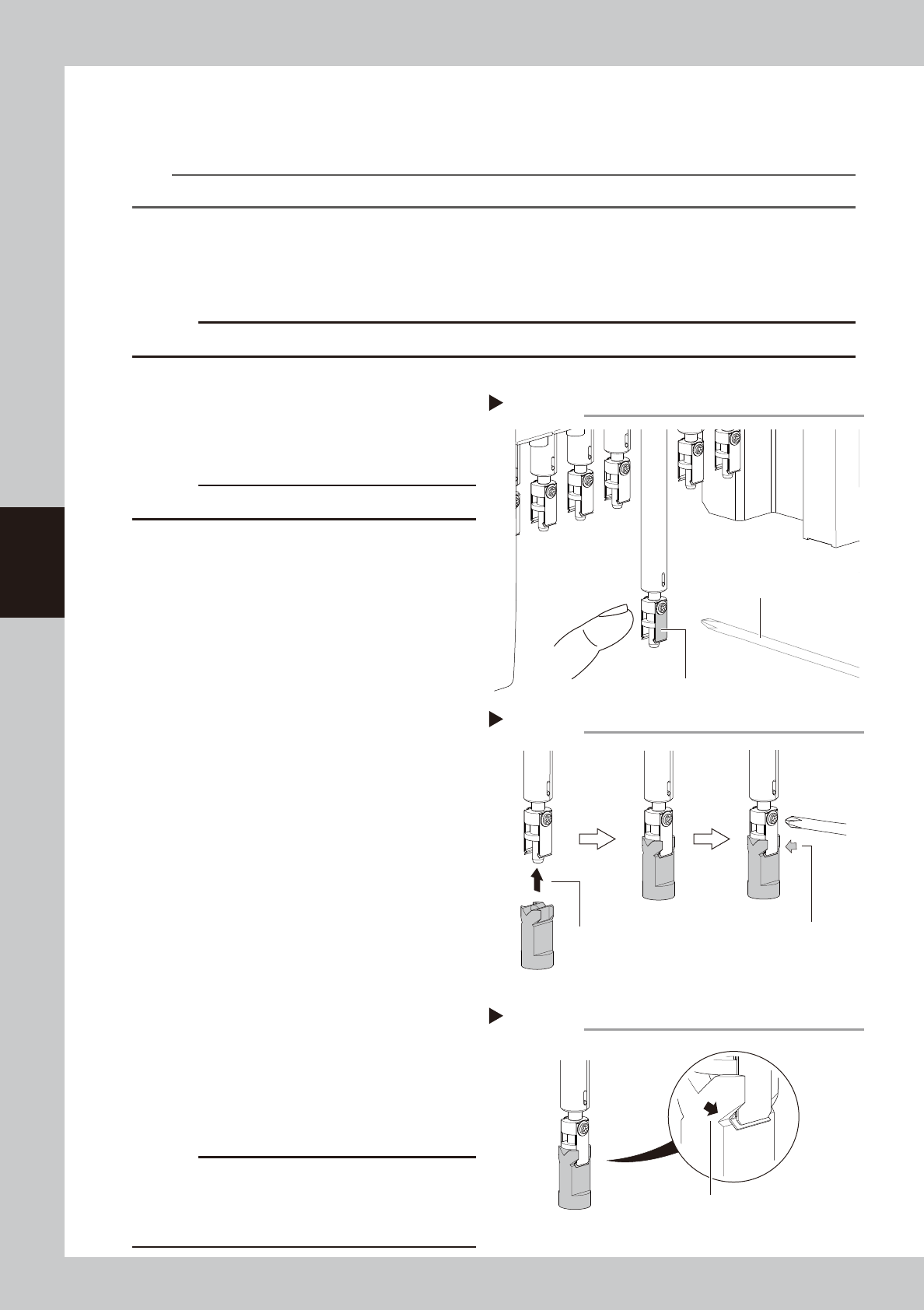 4-5 4 How to replace consumable parts 3. Ejector unit 3.1 Replacing an ejector bit 1 Shut off the air supply . T ur n the air supply/shutoff switch inside the machine lower left panel to the right, to stop the air supply…