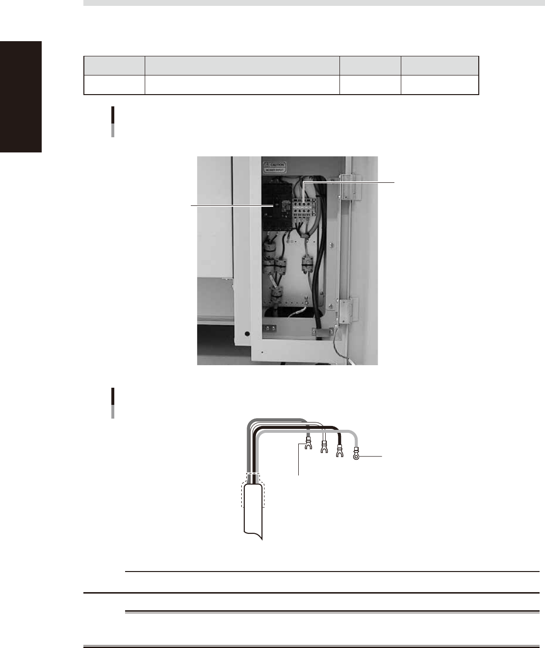 the power cable leads as shown below to the L1, L2, L3 and ground terminal (PE) on the power terminal block.