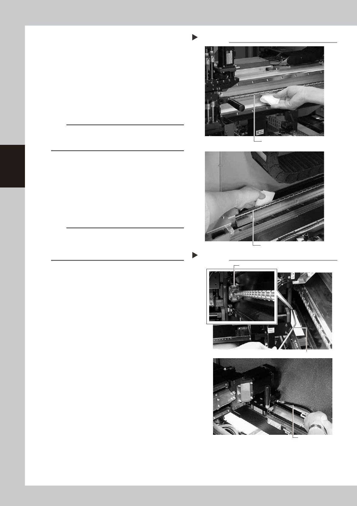 Carefully wipe the lead grooves of the ball screws