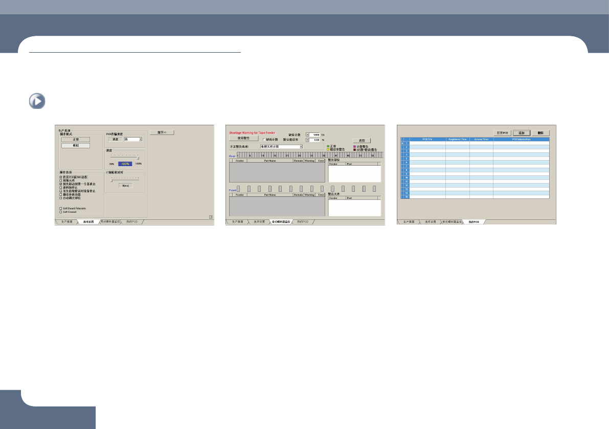 '运行设定'画面 '带式喂料器监控'画面 '我的PCB'※画面
