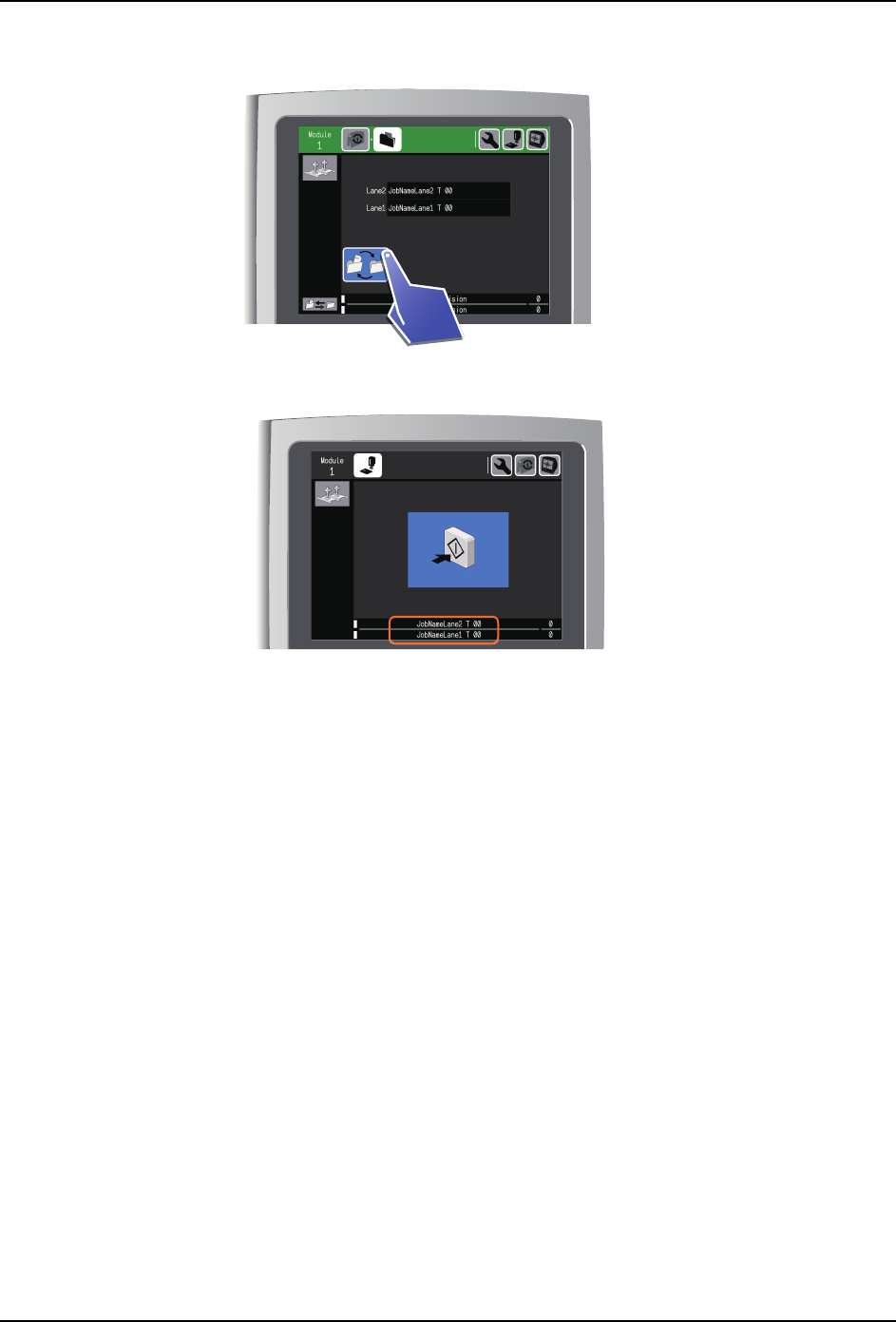 ·预约 Job 名的显示栏的上层显示轨道 2 的 Job 名,下层显示轨道 1 的 Job 名。