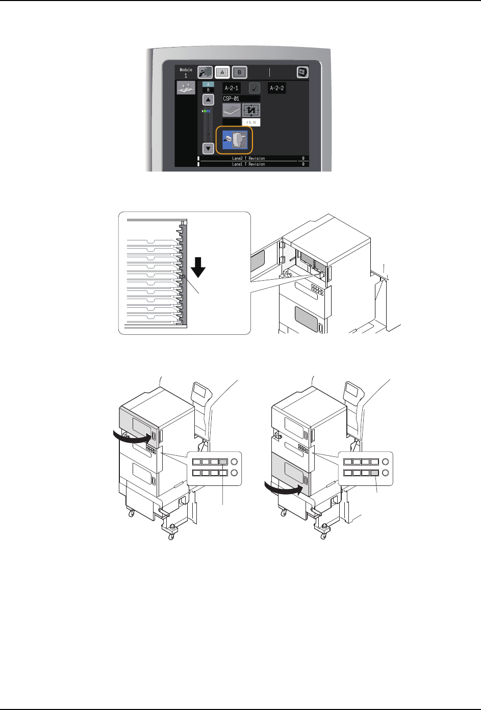 备注 )请轻轻关闭正面门,以免料盘装置装置 -LT 受到冲击。