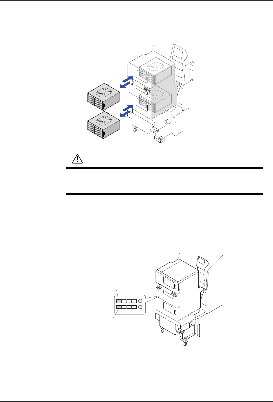 注意 )在将料盘托架安装到料盘箱内时,在不产生冲击下将料盘托架放入最里面。