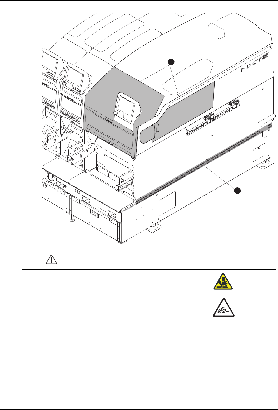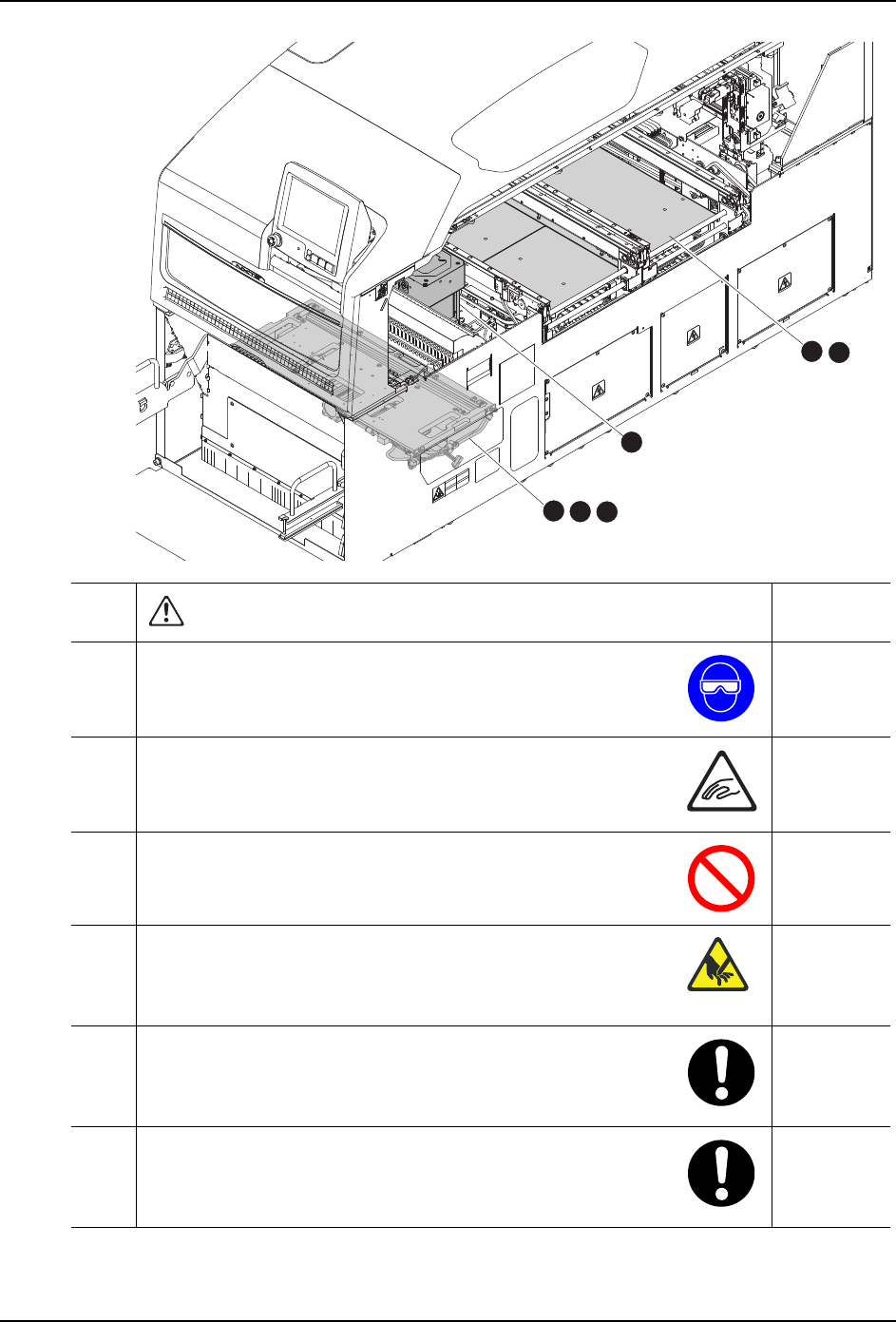 SYS-NXT3c-007S0 1. 安全指南 NXT III/NXT IIIc 系统手册 11 01MEC-1557 20 22 21 23 24 25 相关章节 20 不要直视影像处理光源、电路板 搬运确认传感器光源。请使用 太阳镜等有色的保护眼镜。 ·用眼睛直视光源时,有可能被 光源刺伤眼睛。 21 抬起支撑板时,请注意手指不要 夹在支撑板和宽度调整滚珠丝 杆、六角轴之间,也不要被搬运 轨道边角擦伤。 4.9 ·手指有可能受伤。 …