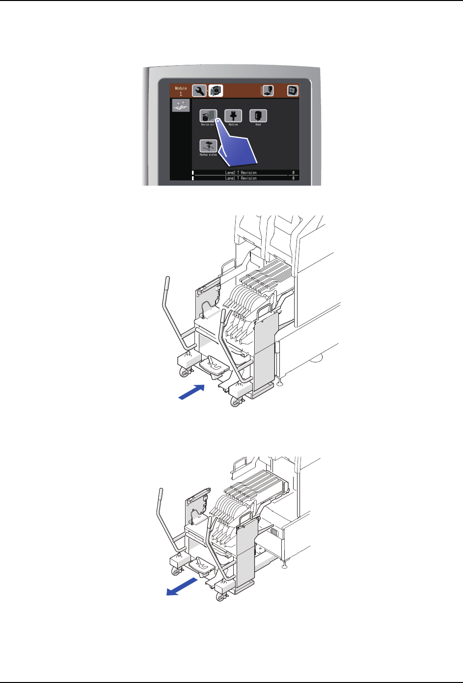 1 Device unit (装置更换) 将松开机器上安装的料站托架和料盘