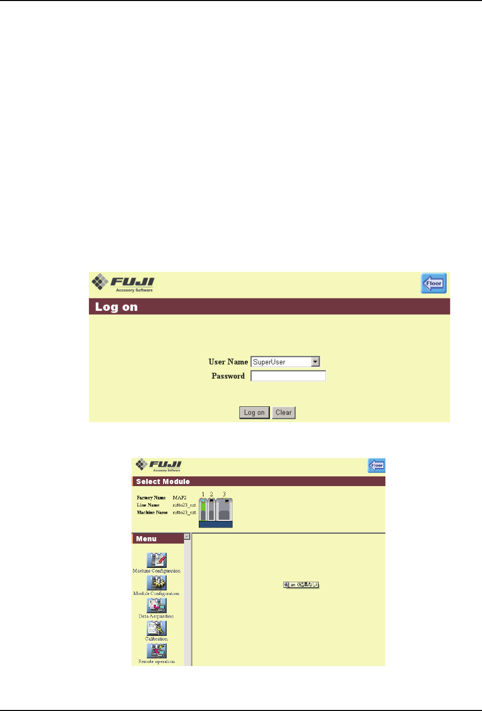 3. 输入用户的密码,单击 [Log on]。显示菜单画面。