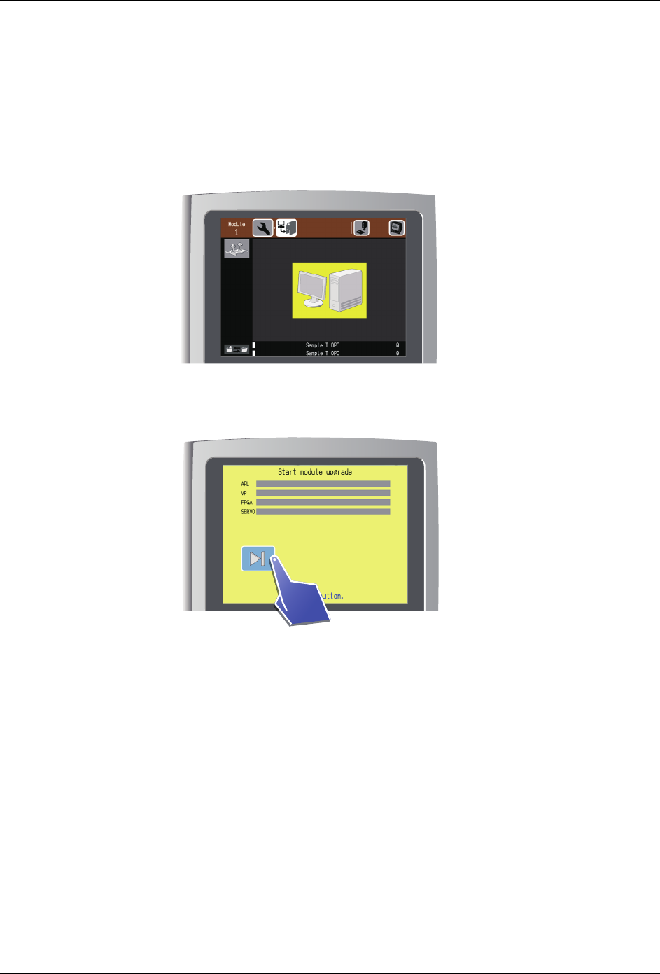 15.请重新启动机器。在操作面板上显示是否进行模组的版本更新的确认信息。