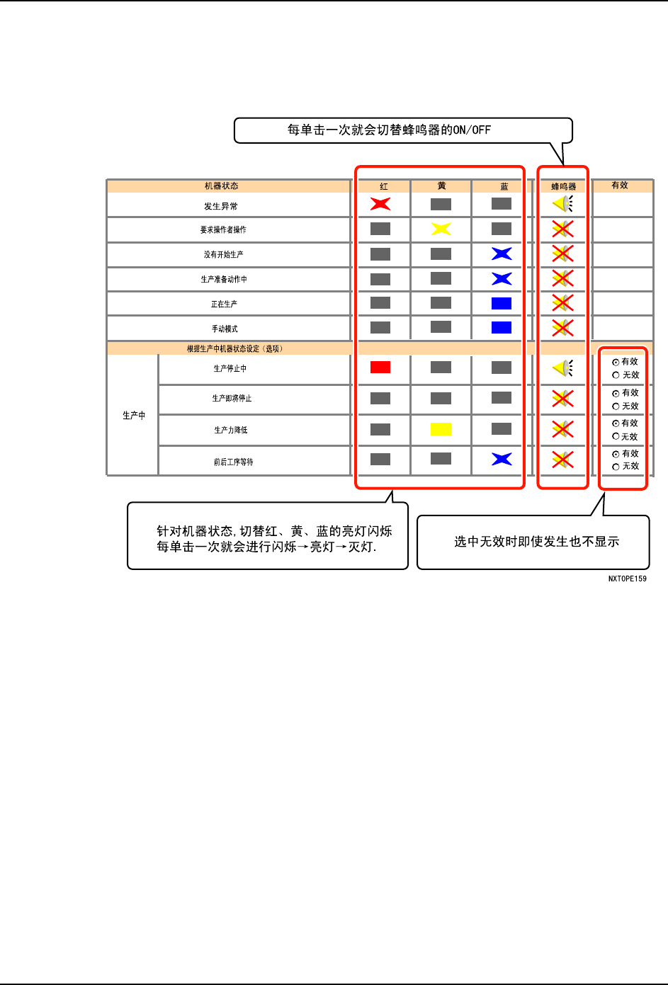 前面提到的有关机器状况的指示灯颜色或者蜂鸣器的设定可以通过辅助软件进行变更。详