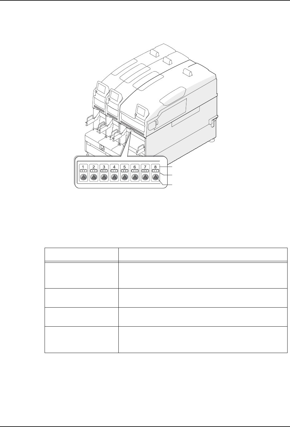 LED 的颜色所表示的料槽状态如下。