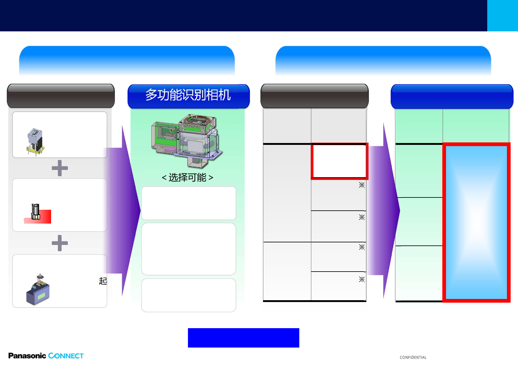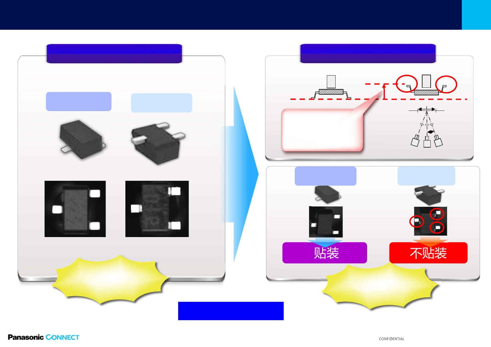 9 © Panasonic Factory Solutions Suzhou Co., Ltd. 2 022 NPM WE 高品质 高速实装 多功能识别相机 <选择可能> 第一种 2D识别 第二种 元件厚度检 测正反反转 检测 (带小型引脚 的元件) 第三种 3D识别 和以前相机的不同点 以往相机 线性传感器 决定元件的 识别位置 检测引脚浮 起 和焊球缺漏 3D传感器 站立吸附 厚度检测 垂直线性相机 实现高速化的多功能识…
