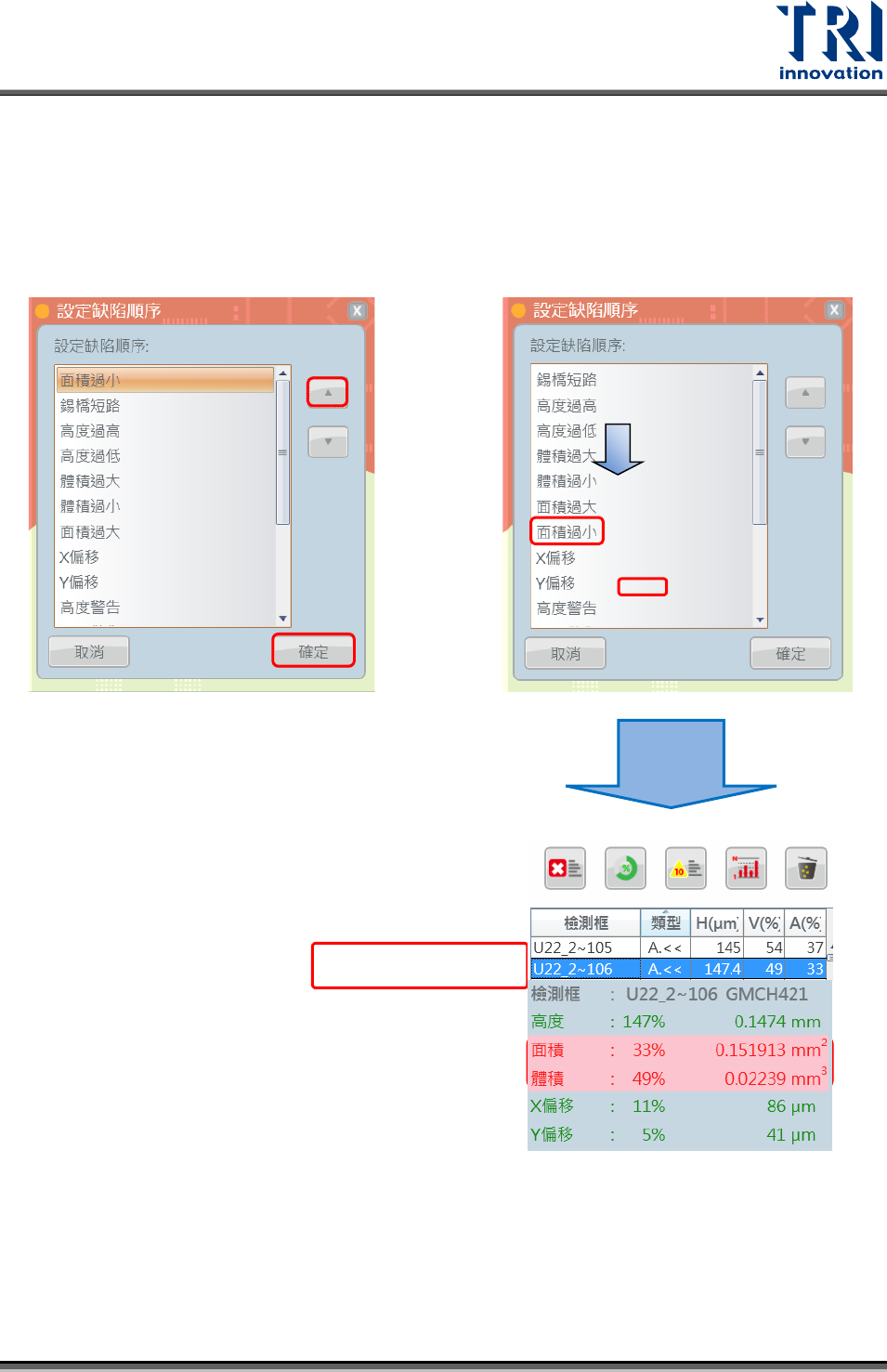 操作步驟:以設定面積過小為不良類型最優先為例