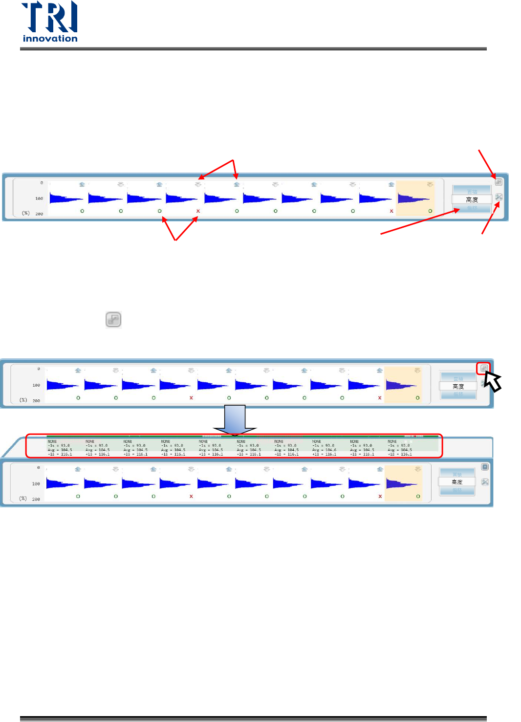 如下圖,點擊 圖示後,在統計圖上方會跑出整個板子高度的平均值、標準差。