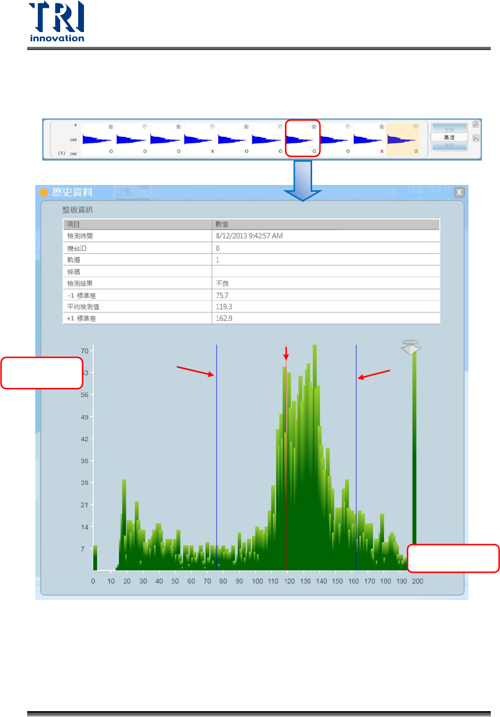 若想檢視長條圖的詳細資訊可在 10 片板子中選取你所想檢視的長條圖圖示並雙擊,